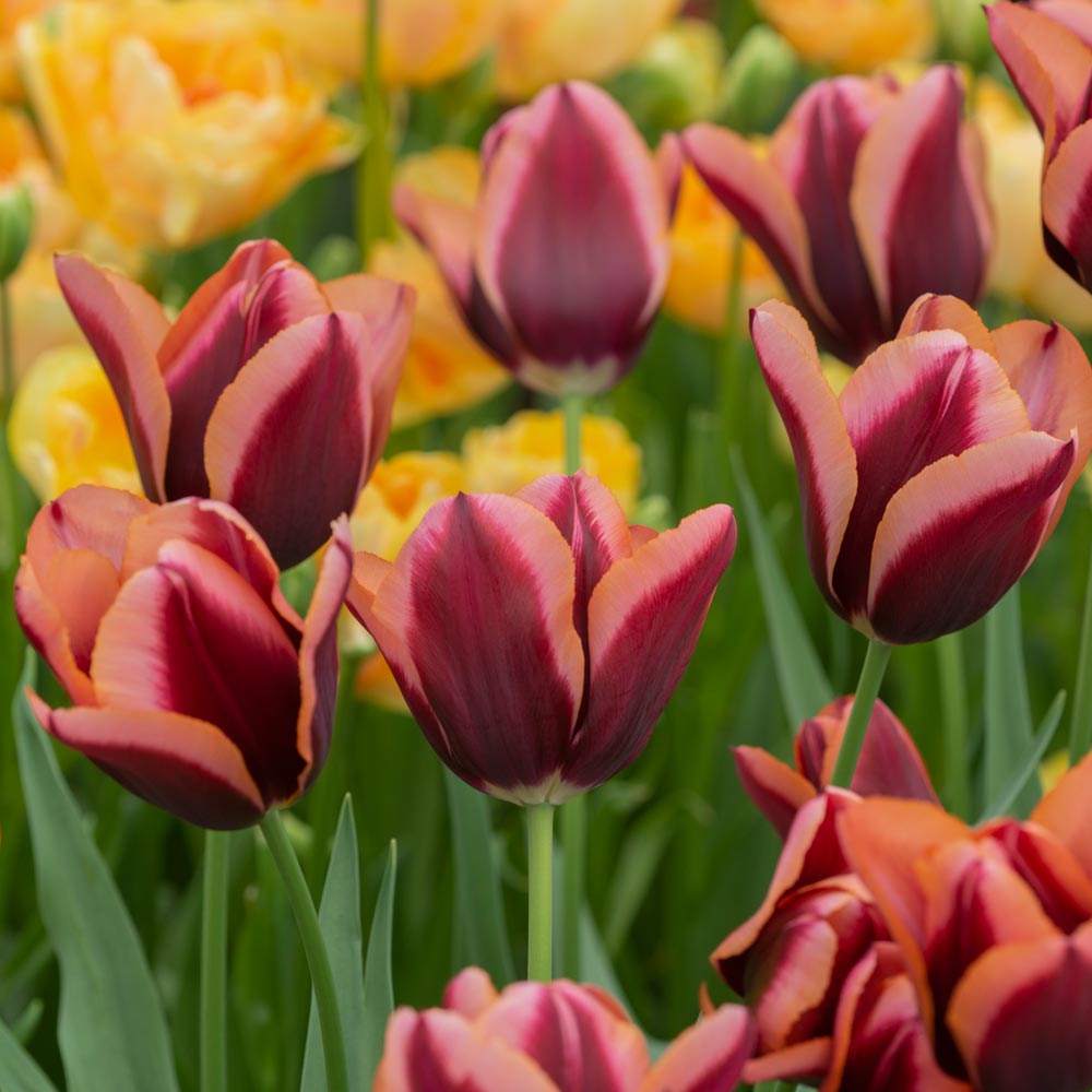 The blooms are striking for their deep burgundy to maroon petals with contrasting copper‑apricot / orange margins. As the flower matures, the margins may shift in hue (e.g. apricot‑pink to yellowish) Floratuin+3johnscheepers.com+3phoenixperennials.com+3